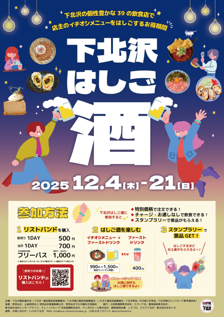 リラクゼーションドリンク「kiyasume」は、12⽉4⽇(⽊)から21⽇(⽇)の期間に開催される「下北沢はしご酒」に協賛いたします。下北沢の個性豊かな39の飲食店で、店主のイチオシメニューをはしごする街バルイベントで、リストバンドを提⽰すると通常よりもお得な価格で各店のお酒と料理を楽しめます。
